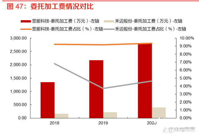 禾邁在微逆行業整體盈利能力處于較高水平,主要體現在: 1)生產模式:昱能科技與 Enphase 生產均通過委托加工模式進行,而禾邁股份的微型逆變器生 產中組裝、灌膠等環節采用自產方式進行,因此在生產環節產品成本相對較低。以昱能為例,其 加工費占公司總成本的 10%左右,而禾邁基本全部自產,相關成本項獲得較好控制;2018-2020 年度昱能剔除配件以后的微型逆變器單位成本分別為 589.72 元/臺、695.11 元/臺和 744.79 元/臺, 禾邁股份剔除配件以后的微型逆變器單位成本分別為 528.44 元/臺、531.75 元/臺和 455.09 元/臺。