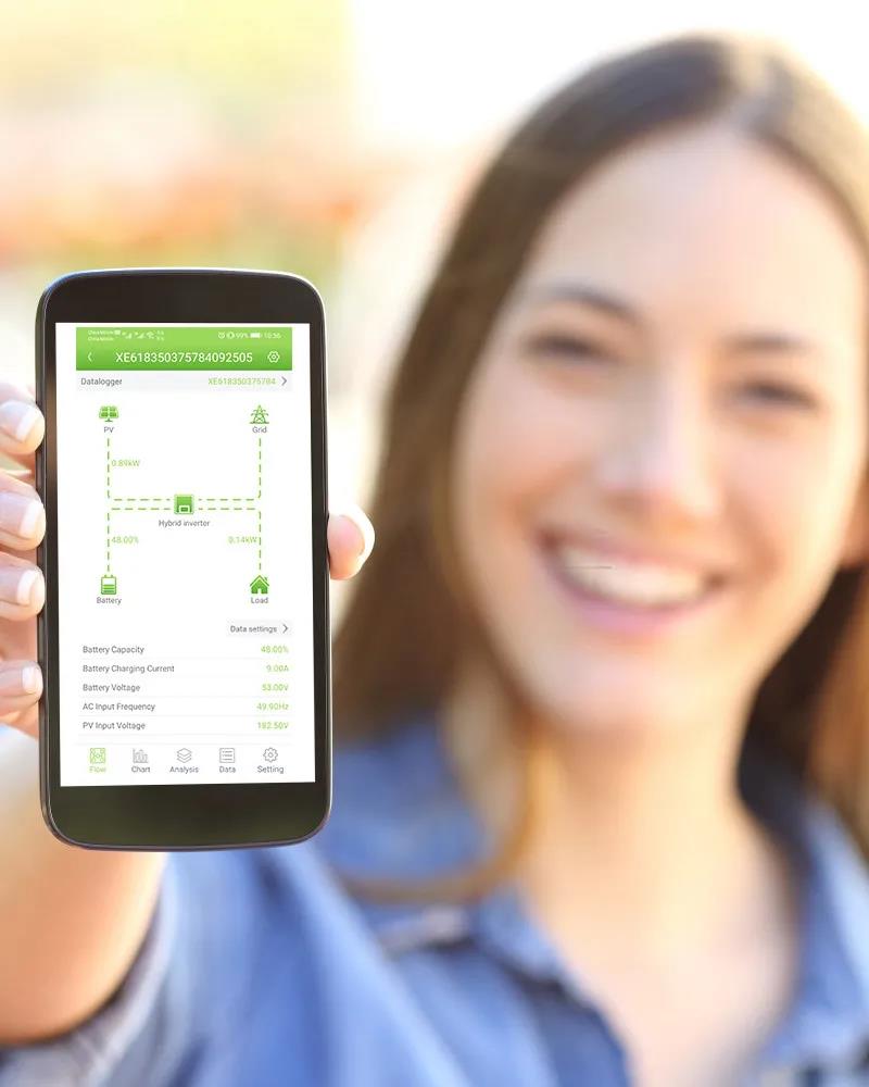 逆變器采用LCD遠程控制,RS485/RS232通訊接口,便于遠程通信和控制。此外,逆變器還搭配了智能監控系統,用戶可以通過智能終端APP隨時隨地查看系統運行狀態。