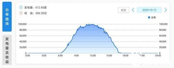 在通過電網公司驗收并網后,觀察到電站運行無異常,電站發電量超出預期,下圖是其中一臺GW100K-HT在10月21日發電曲線,累計發電為600多度。