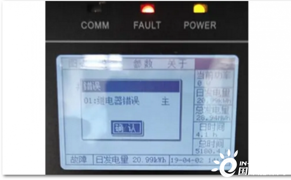 如果逆變器檢測到繼電器異常,則表示繼電器各檢測點的檢測電壓對比異常。導致異常的原因可能是交流側有相線接地或交流接線有虛接,也可能是繼電器檢測電路或者繼電器本身異常導致報警。