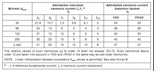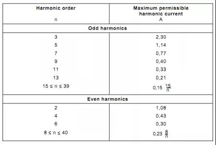當(dāng)逆變器的額定電流I≤16A時,根據(jù)IEC61000-3-2標(biāo)準(zhǔn),各次諧波電流的限值如下表所示: