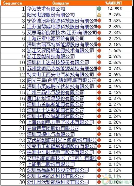2018光伏逆變器出口30強出爐 華為、陽光電源、錦浪科技位居前三
